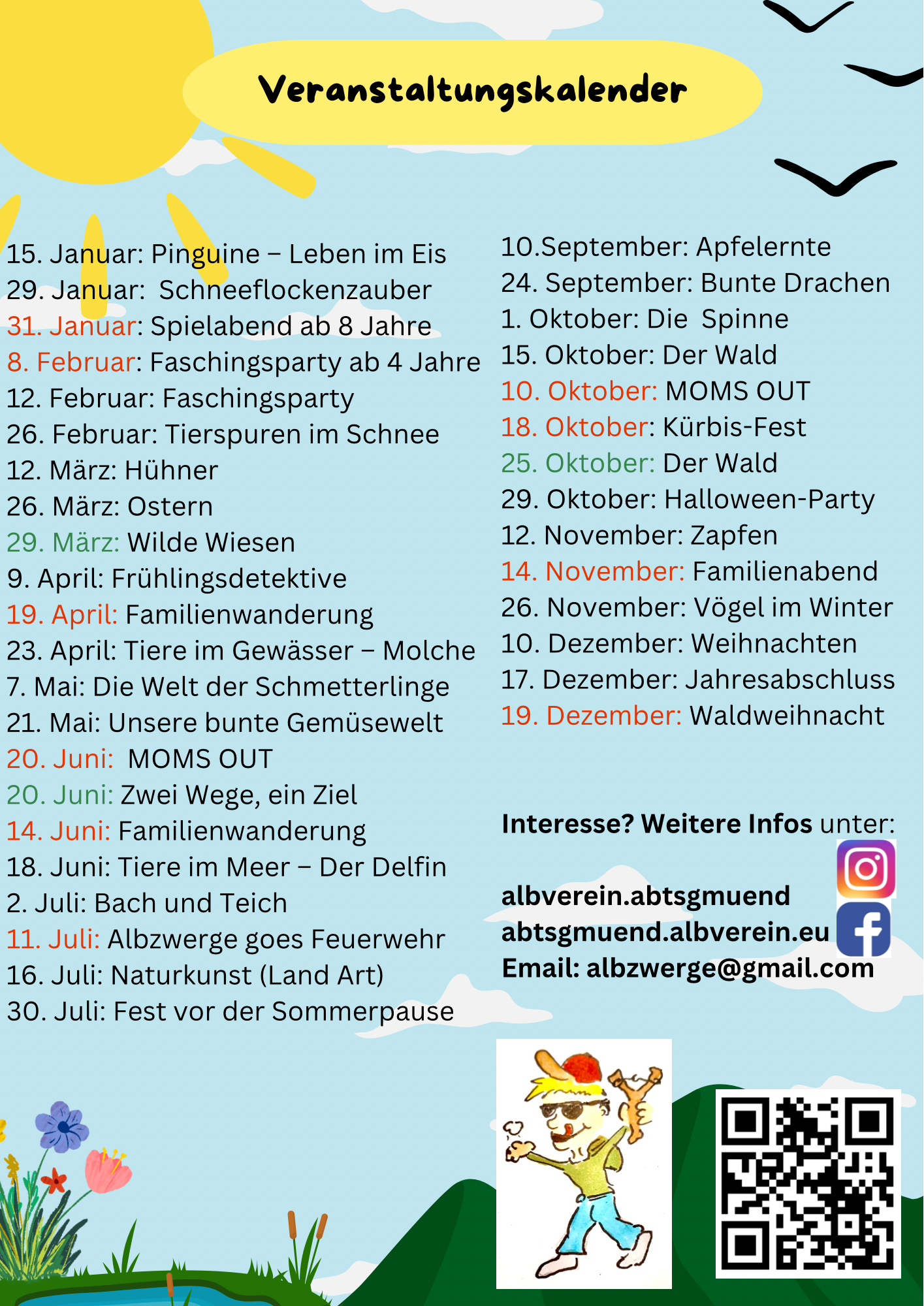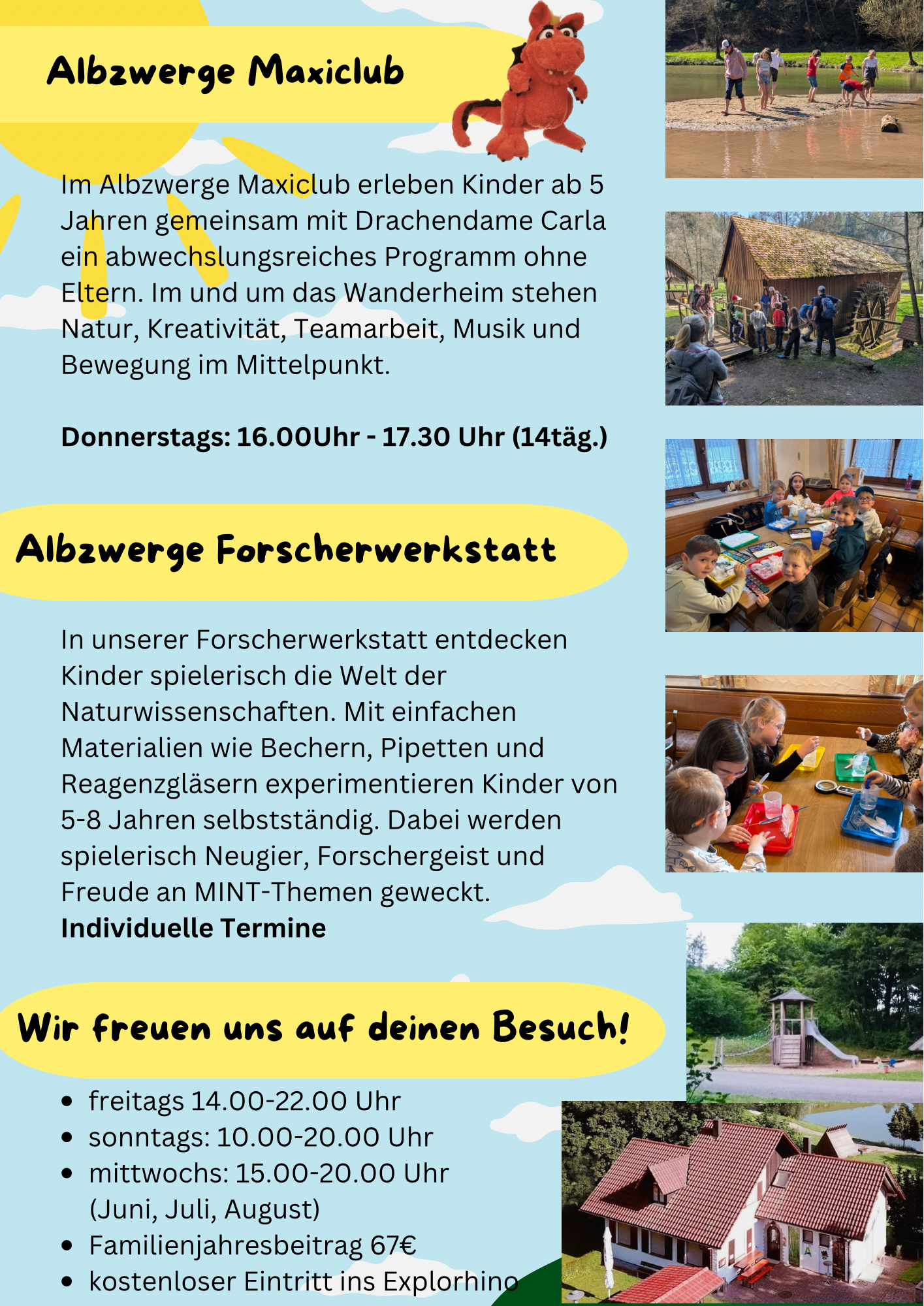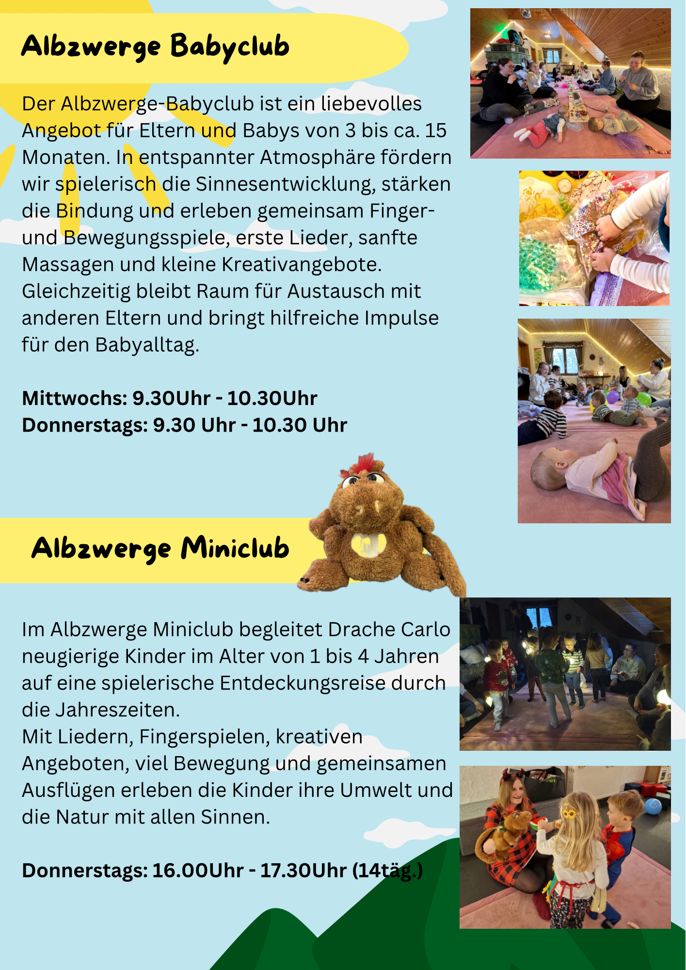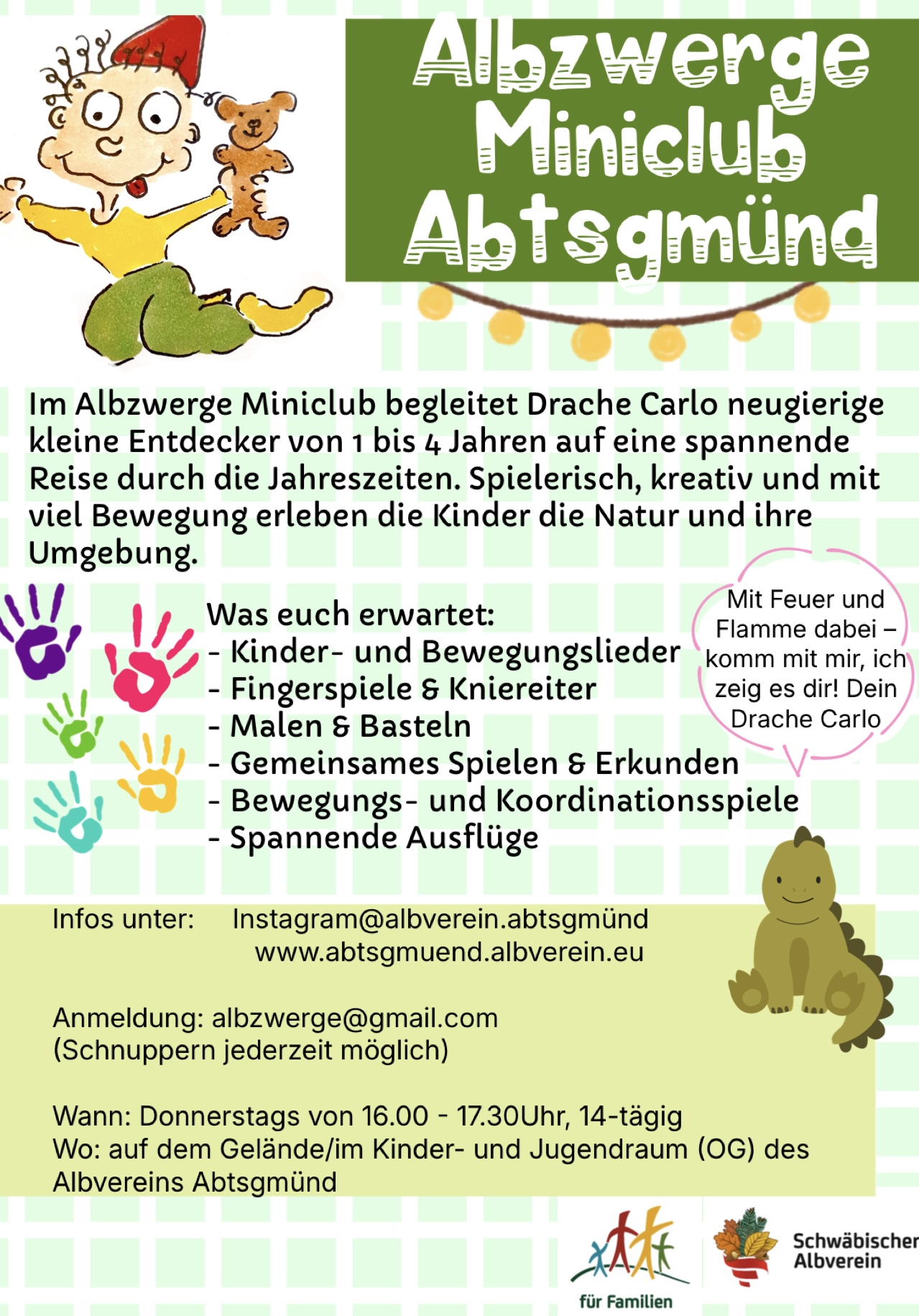 Seit 2023 tritt unsere Familiengruppe unter dem Namen Albzwerge auf. Je nach Alter gliedern sich die Angebote in: